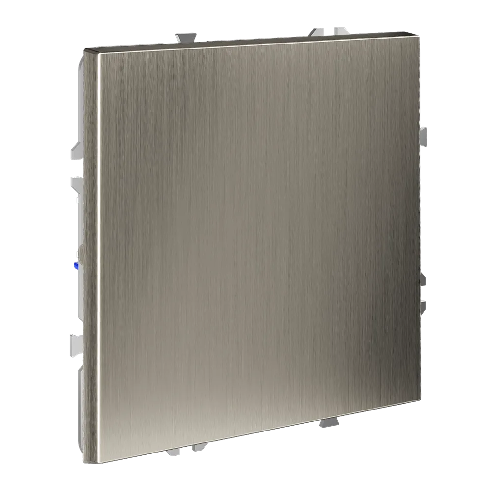 Серебристый никель с едва уловимым тёплым отливом — это современный выбор без холодности. Металлическая накладка прошла многоступенчатую обработку: