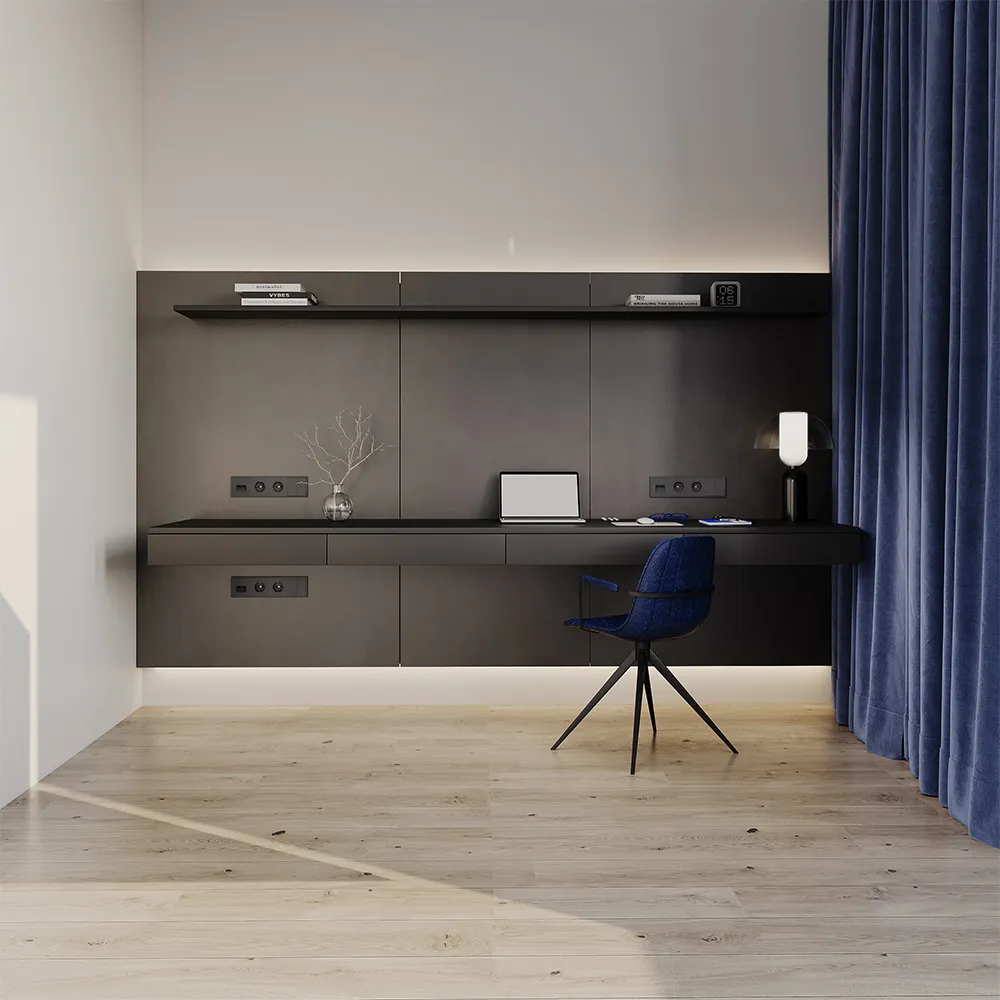Выключатель полностью совместим с рамками из пластика и закалённого стекла той же серии и гармонично сочетается с другими устройствами VOLTUM S70 — от розеток до терморегуляторов и датчиков движения.